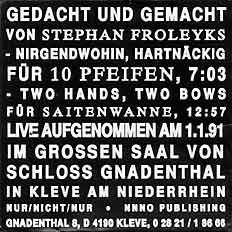 1, 1991. ‘Nirgendwohin, Hartnäckig’ is a work for a ten flute instrument, played by Froleyks. An almost