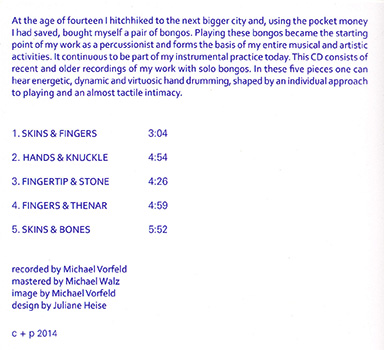 Michael Vorfeld – Skin – Vorfeld plays Bongos 1. SKINS & FINGERS 3:04 |